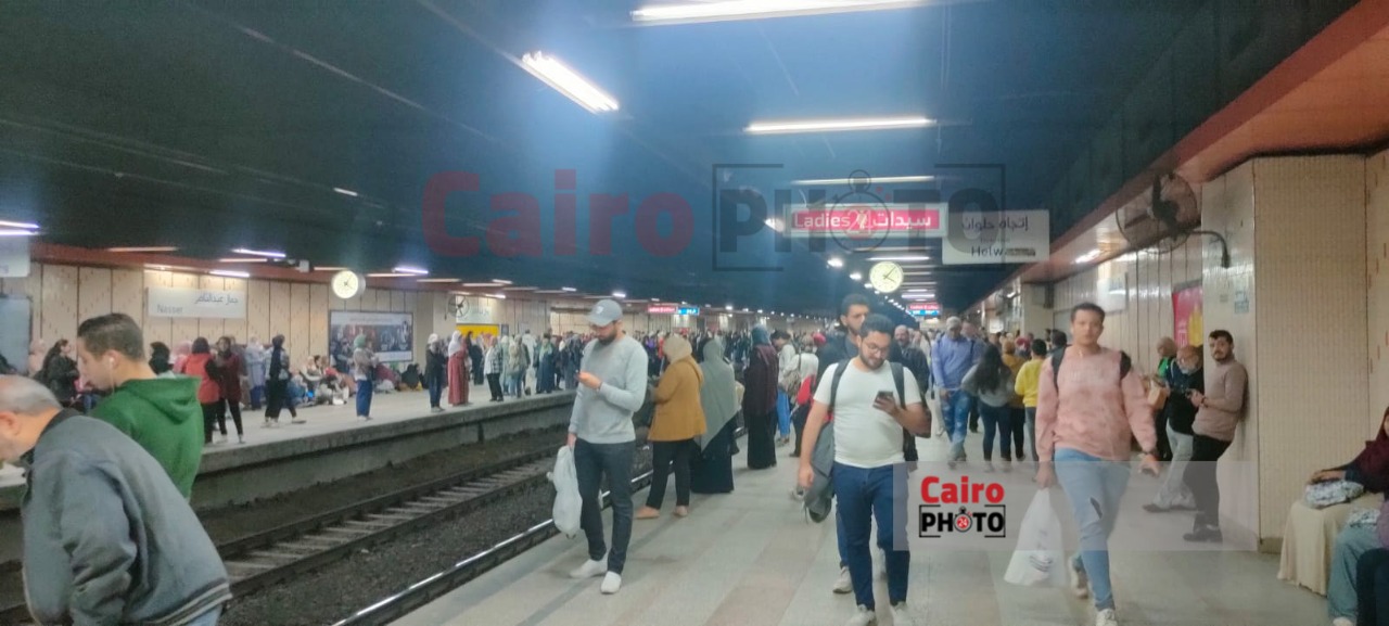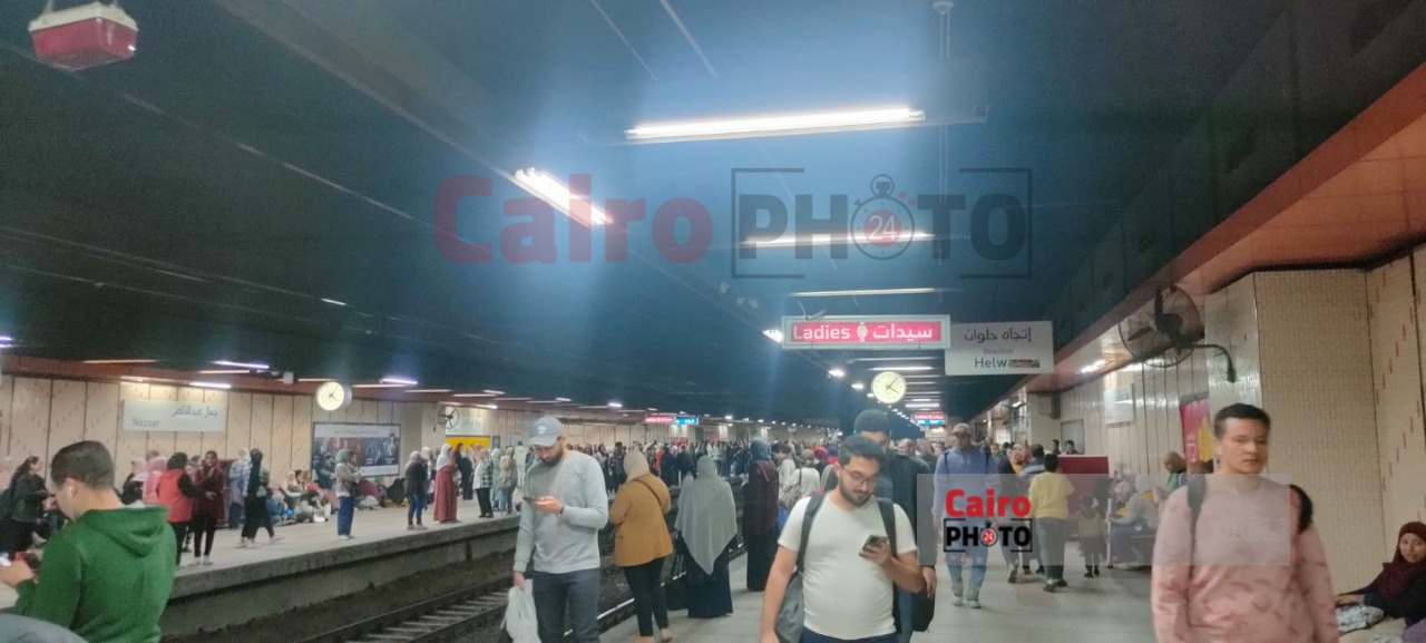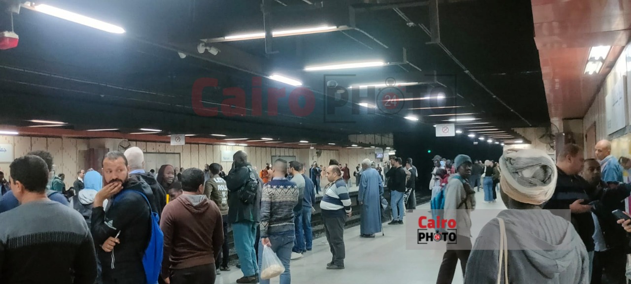 زحام شديد بـ محطات مترو الخط الأول بعد توقفه نتيجة عطل بالشبكة الكهربائية | صور