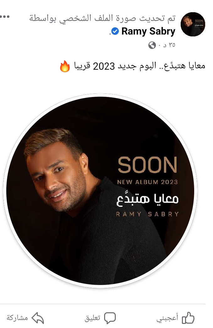 وشارك، رامي صبري، متابعيه بنشر بوستر ألبومه الجديد عبر حسابه الشخصي بموقع فيسبوك وعلق عليه قائلا: معايا هتبدع..البوم جديد 2023 قريبا.