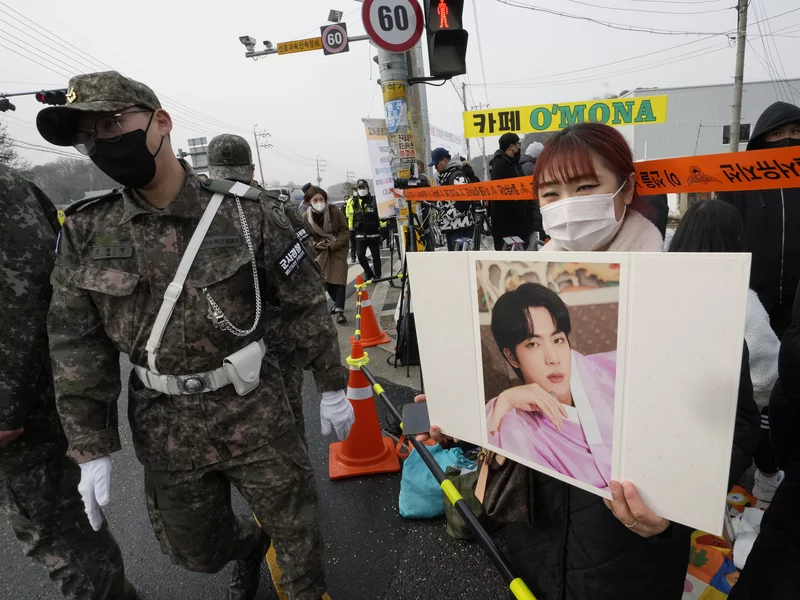 بدأ جين، عضو فرقة BTS الغنائية، خدمته العسكرية الإلزامية في الجيش الكوري، ومن المقرر أن ينتهي من أداء خدمته في 2024.