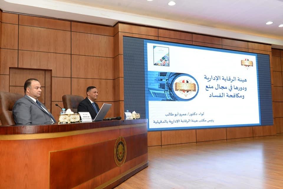 وتحدث رئيس الهيئة بالدقهلية عن الدور الذي تقوم به هيئة الرقابة الادارية واختصاصاتها على مستوى المحافظات المصريةفى مكافحة الفساد والتصدى له بكافة اجهزة الدولة حفاظا على مقدراتها ووضع الحقوق فى نصابها، كما تحدث عن المحاورالرئيسية لعمل هيئة الرقابة الإدارية، وأبرز الجرائم الجنائية التي تختص بها هيئة الرقابة الإدارية، ودور الهام الذي تلعبهالأكاديمية الوطنية لمكافحة الفساد.