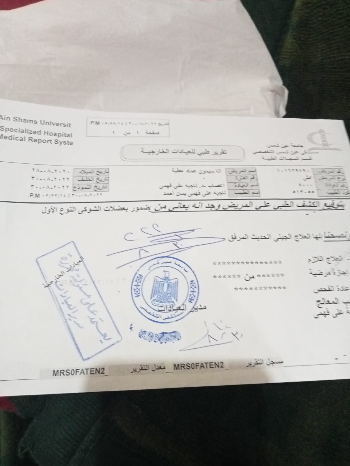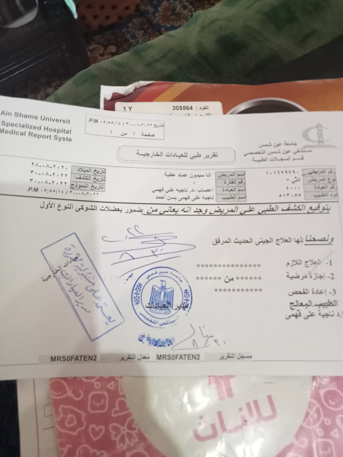 وتتابع الأم: الدكاترة قالولي على علاج تاني مدى الحياة، بـ 2 مليون ونص في السنة، لأنها هتاخد كل 80 يوم، جرعة بـ55 ألف، ولحد انهارده مش عارفة أصرفه.