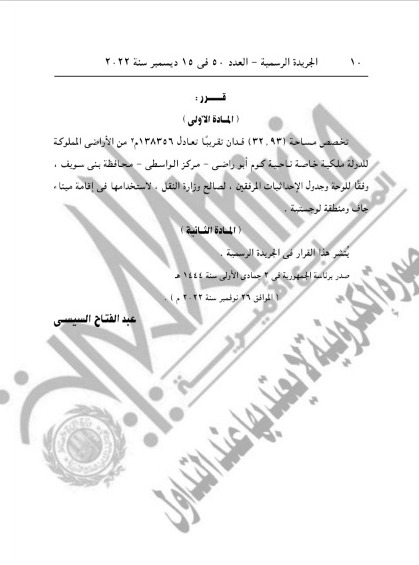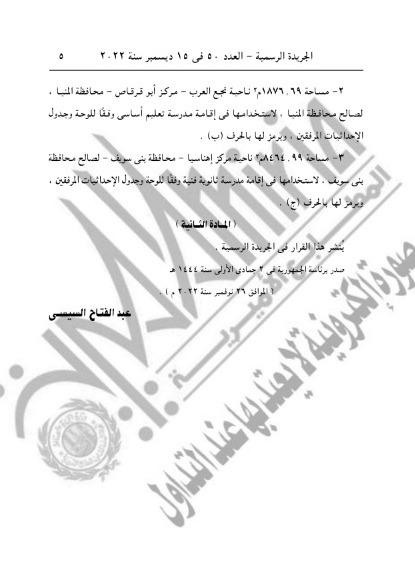 والمادة الثانية ينشر هذا القرار في الوقائع المصرية