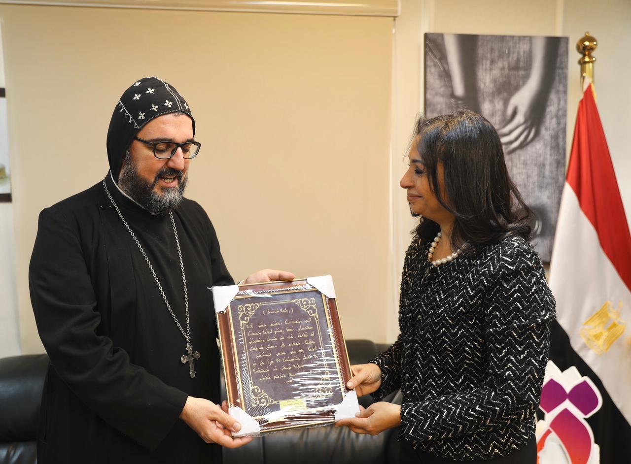 مايا مرسي تلتقي كاهن الكنيسة السريانية لبحث التعاون بين الجانبين