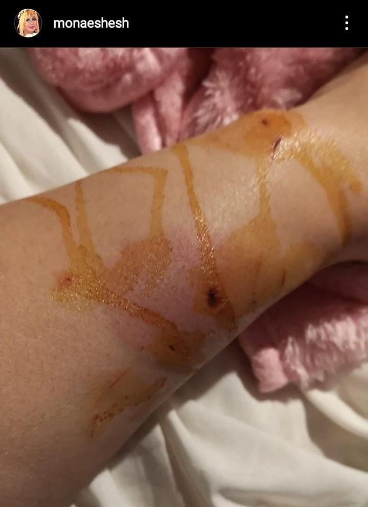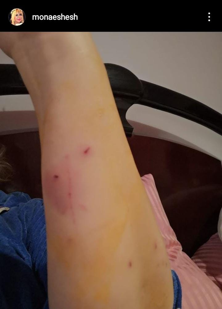 ونشرت منى إش إش عددًا من الصور لتلك الإصابات، عبر حسابها بموقع إنستجرام، معلقةُ عليها: لا حول ولا قوة إلا بالله العلي العظيم في عز مرضي ومش قادرة أقف على رجلي، القط القديم مسك القط الجديد كان ها يفرمه لولا تدخلت، وكانت النتيجة زي ما أنتم شايفين، المشكلة إني مش قادرة أروح آخد سعار، والدكاترة اختلفوا، والله والله والله تعبت بجد.