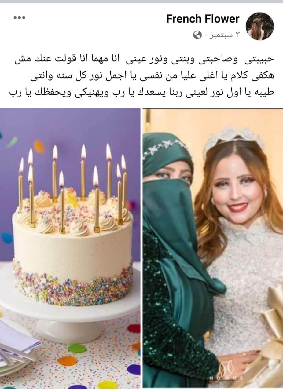 وجاء نص الرسالة:"حبيبتي وصاحبتي وبنتي ونور عيني.. أنا مهما أنا قولت عنك مش هكفي كلام يا أغلى عليا من نفسي يا أجمل نور كل سنة وأنتي طيبة يا أول نور لعيني ربنا يسعدك يا رب ويهنيكي ويحفظك يا رب".