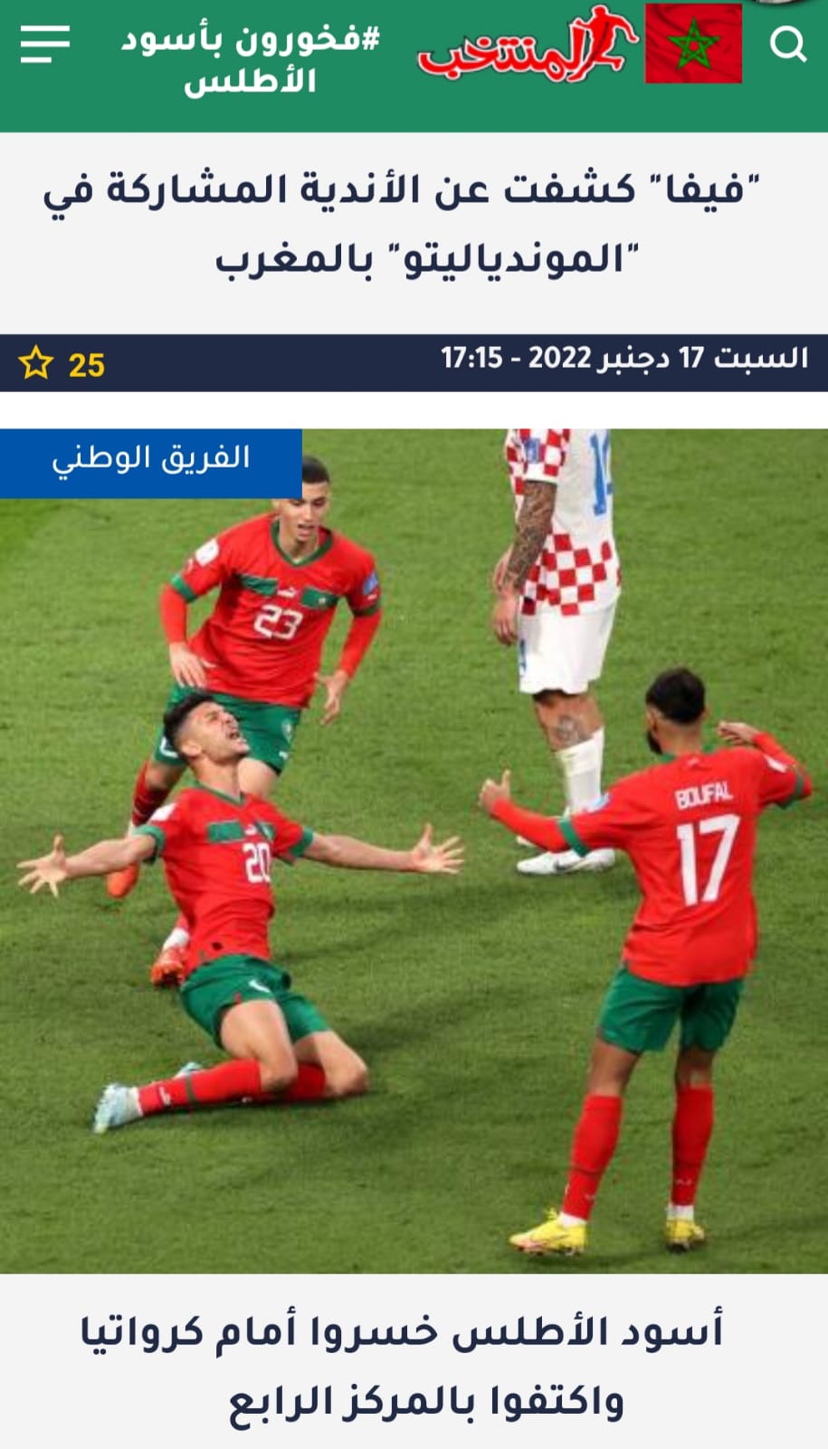 قالت صحيفة المنتخب المغربية: أسود الأطلس خسروا أمام منتخب كرواتيا واكتفوا بالمركز الرابع في كأس العالم.