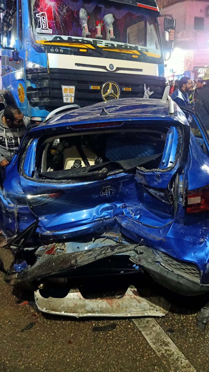 كما اصطدم سائق السيارة النقل بسيارة شيڤورليه دبابة، حمراء اللون، بها تلفيات بالمقدمة كان يقودها شخص ولم يصب بالحادث، وإصابة شخص آخر في الحادث كان يقود سيارة كيا بها تلفيات.