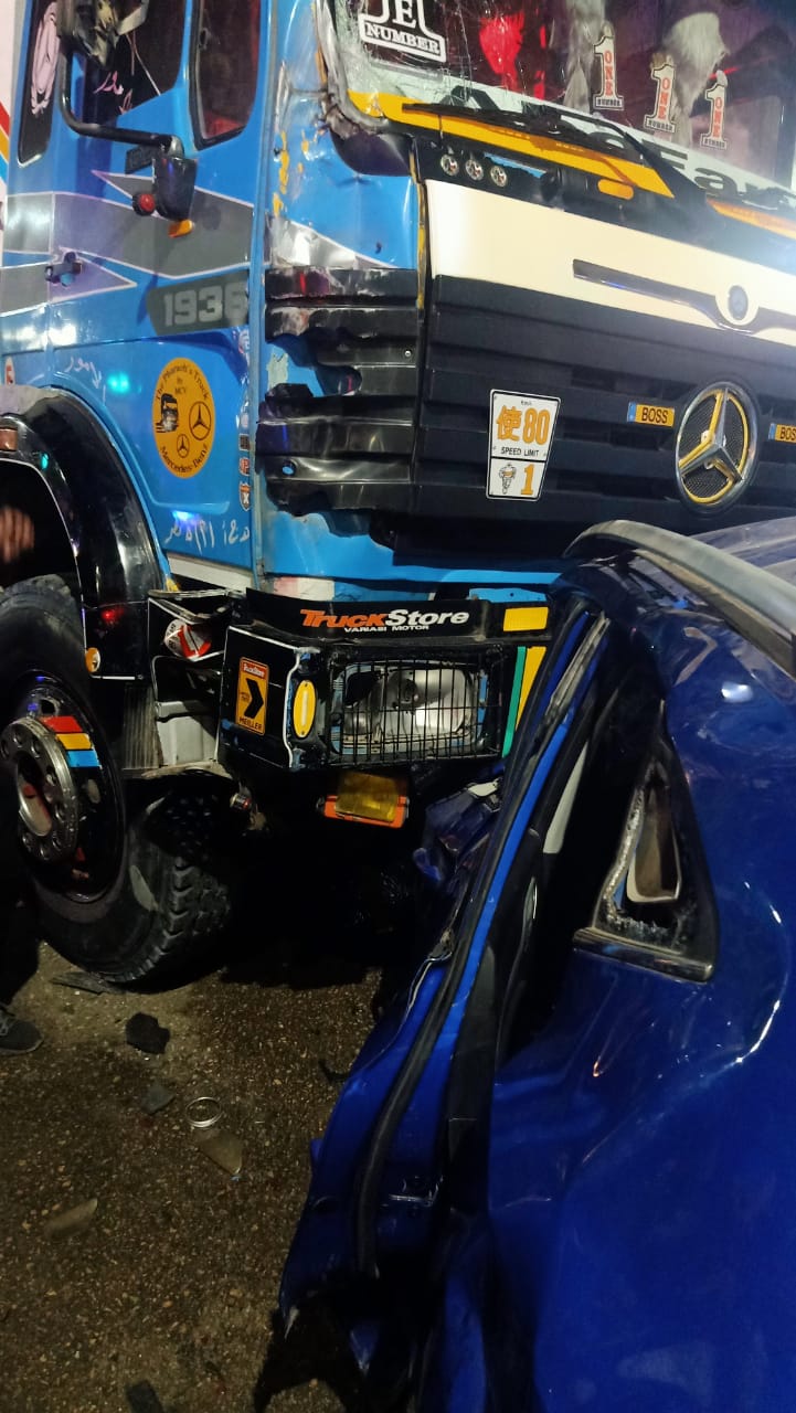 كما اصطدم سائق السيارة النقل بسيارة شيڤورليه دبابة، حمراء اللون، بها تلفيات بالمقدمة كان يقودها شخص ولم يصب بالحادث، وإصابة شخص آخر في الحادث كان يقود سيارة كيا بها تلفيات.