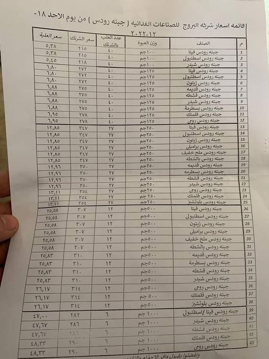 وحسب مستند حصل القاهرة 24 على نسخة منه، مرسل إلى التجار أعضاء الغرف التجارية، بالقائمة الجديدة لأسعار جبنة رودس، أنه ارتفع سعر عبوة جبنة رودس الـ 125 جم، لتصل إلى 7 جنيهات، بدلًَا من 6 جنيهات.