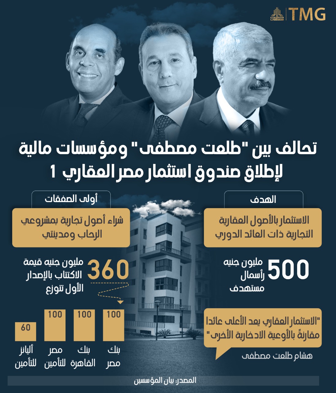 وأطلق بنك مصر بالشراكة مع كلٍ من بنك القاهرة، وشركتا مصر القابضة للتأمين، وأليانز للتأمين؛ صندوق استثمار عقاري تحت اسم صندوق استثمار مصر العقاري1؛ يستهدف الاستثمار في الأصول التجارية ذات العائد الدوري، مما يتيح آلية للراغبين في الاستثمار العقاري وتحقيق عوائد جيدة، وتوزيع المخاطر على عدة عقارات مملوكة للصندوق. ونجح الصندوق في إبرام أولى صفقاته بشراء أصول تجارية من الشركة العربية للمشروعات والتطوير العمراني، إحدى شركات مجموعة طلعت مصطفى القابضة، بمشروعي الرحاب ومدينتي، واللذان يتميزان بقوة شرائية عالية ومعدل نمو مستمر، بما يتماشى مع مستهدفات الصندوق في تحقيق عوائد دورية مرتفعة للمساهمين.