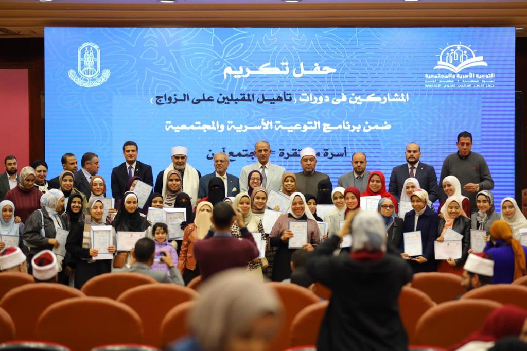 وأقيمت فعاليات حفل تكريم الحاصلين على دورات تأهيل المقبلين على الزواج في مركز الأزهر للمؤتمرات، حيث تم تكريمهم من قبل علماء وقيادات الأزهر ومركز الأزهر العالمي للفتوى الإلكترونية وتسليمهم شهادات حضور معتمدة باجتياز الدورات، والذين أعربوا عن خالص شكرهم وتقديرهم للأزهر الشريف ولإمامه الأكبر الدكتور أحمد الطيب، شيخ الأزهر، على ما لمسوه من نفع وعلم وجهد في هذه الدورات.
