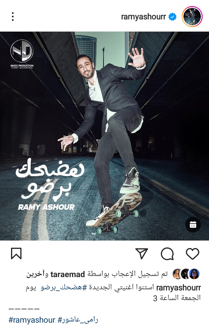 ونشر رامي عاشور، البوستر الرسمي للأغنيه عبر حسابه الشخصي بموقع انستجرام، وعلق عليها قائلًا: استنوا أغنيتي الجديدة هضحك برضو، يوم الجمعة الساعة 3 عصرًا.