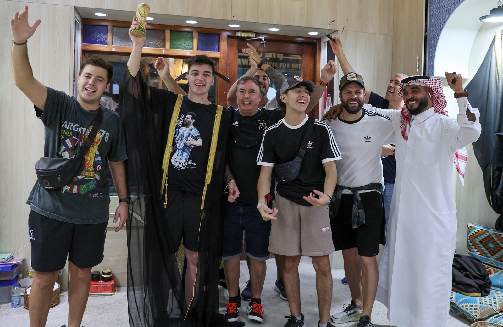 وانتشر عدد كبير من الصور والفيديوهات للمشجعين وهم يسيرون في الشوارع مرتدين البشت أو في المحال يشترونه.