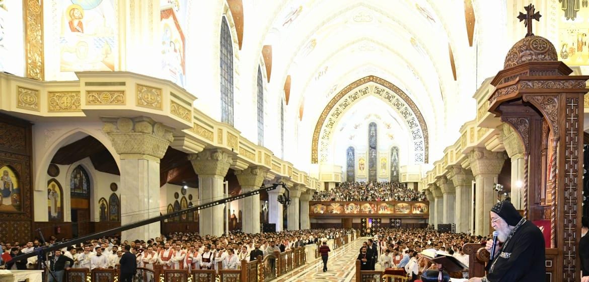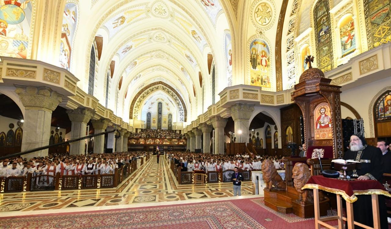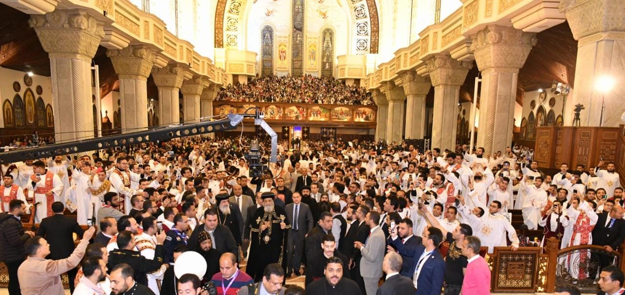 آلاف الشباب يشاركون البابا تواضروس الثاني التسبيح في الكاتدرائية الكبرى| صور