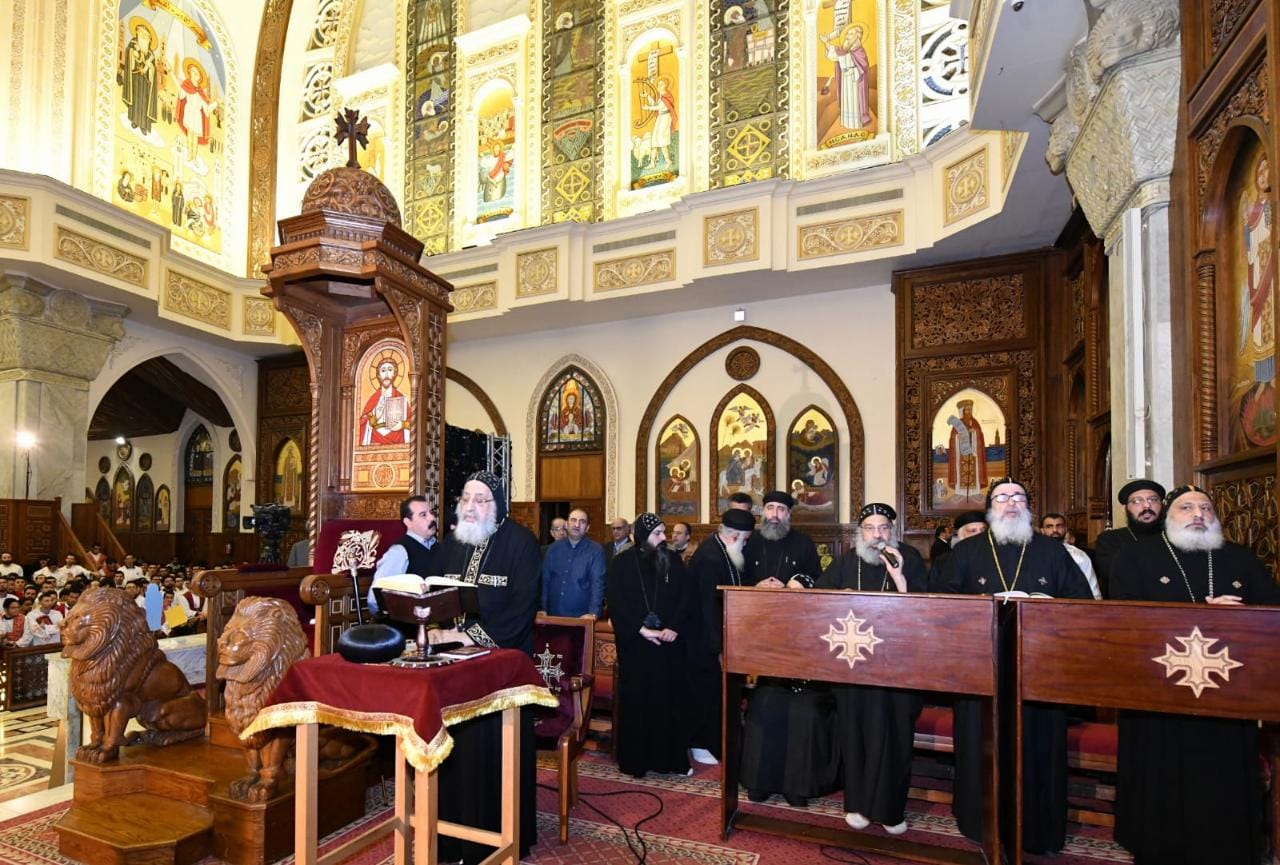 صلى قداسة البابا تواضروس الثاني، بابا الإسكندرية وبطريرك الكرازة المرقسية، بالكاتدرائية المرقسية بالعباسية، صلوات التسبحة الكيهكية "سينرچيا 4" التي نظمتها للمرة الرابعة لجنة جامعة بأسقفية الشباب.