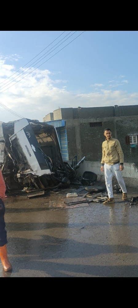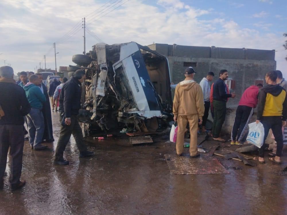 انقلاب ميني باص على طريق جمصة - المنصورة