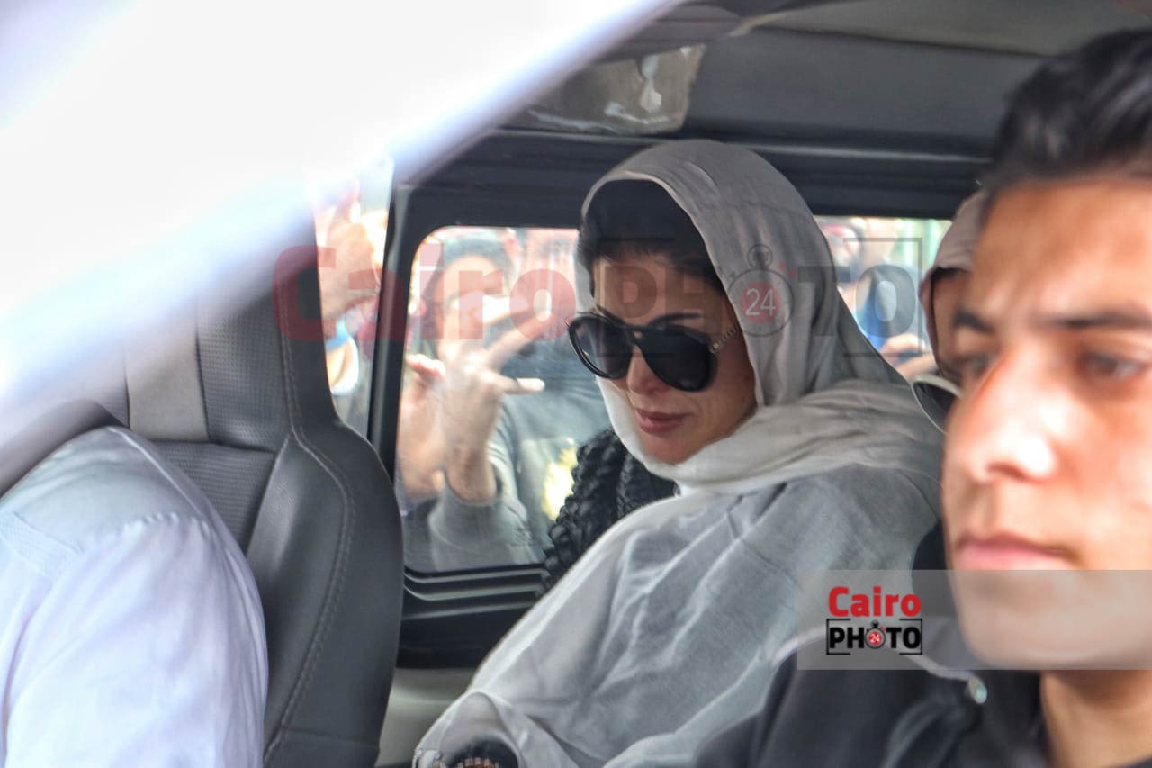 انهيار جومانا مراد أثناء صلاة الجنازة على والدها في مسجد الشرطة بالشيخ زايد