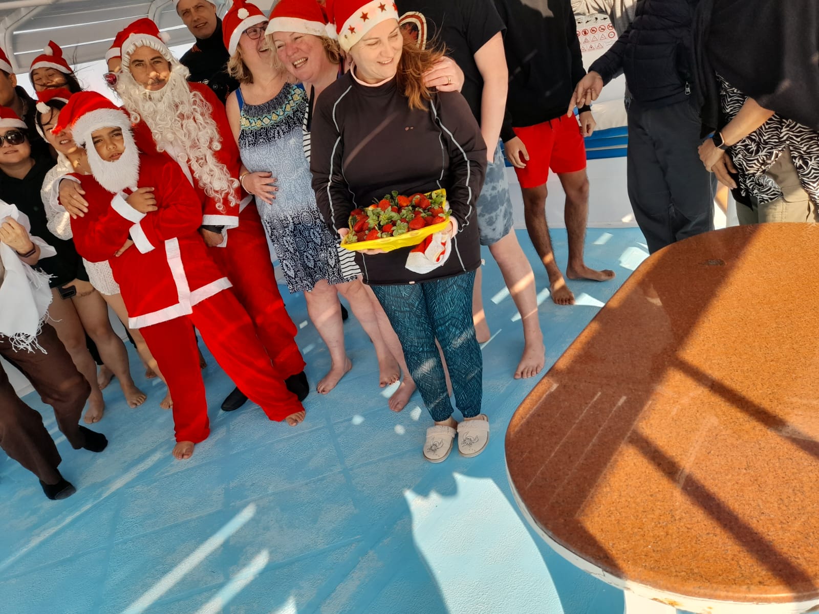 وكشف منظم رحلات بحرية بالغردقة في تصريحات لـ القاهرة 24، بأن عددًا من السائحين الأجانب من جنسيات مختلفة ارتدوا زي بابا نويل الشهير وزنية الكريسماس تزامنًا مع احتفالات الكريسماس، وتبادلوا التهاني وعبروا عن أمنياتهم في الكريسماس والتقطوا الصور التذكارية مع أطباق الفراولة الحمراء وهي فاكهة مفضلة لدى الأجانب في احتفالات الكريسماس.