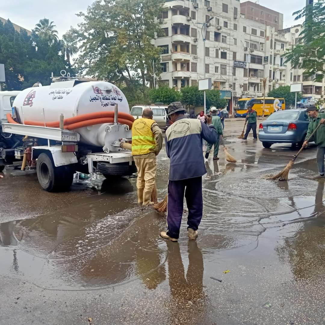 وقال محافظ الجيزة، إن جميع المعدات والأطقم والأجهزة، انتشرت على الفور وفقًا لخطة العمل المسبقة للتعامل الفوري للحد من الآثار الناجمة ورفع تراكمات المياه بشوارع وميادين المحافظة، بالتنسيق بين فرق العمل بالأجهزة التنفيذية، وشركة المياه والصرف الصحي والكهرباء والحماية المدنية، حيث يتم رفع التجمعات أولًا بأول مع انتظام الحركة المرورية بجميع الشوارع والميادين.