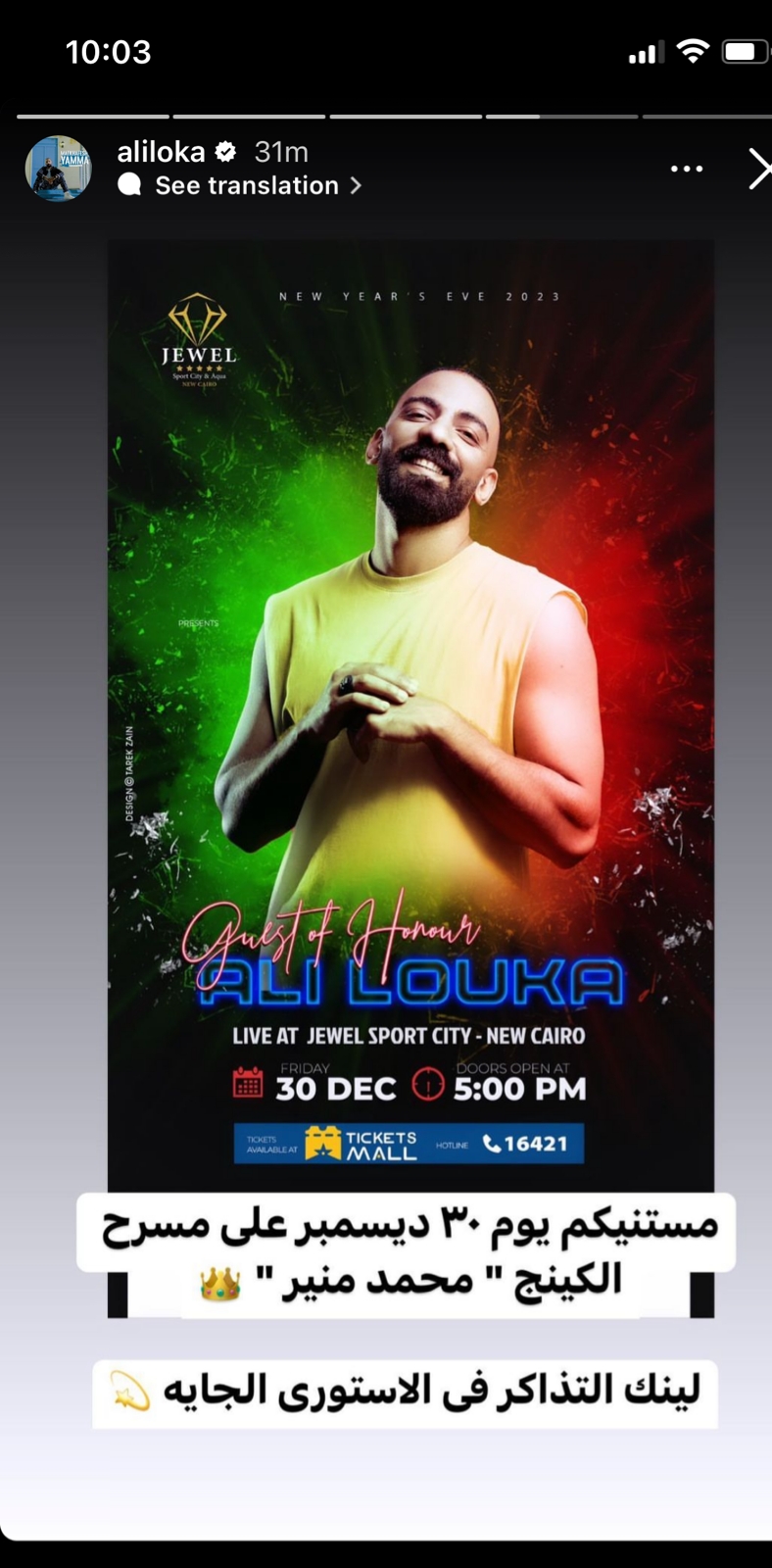 ونشر علي لوكا بوستر الحفل عبر حسابه بموقع انستجرام، وعلق قائلا: مستنيكم يوم 30 ديسمبر على مسرح الكينج محمد منير.