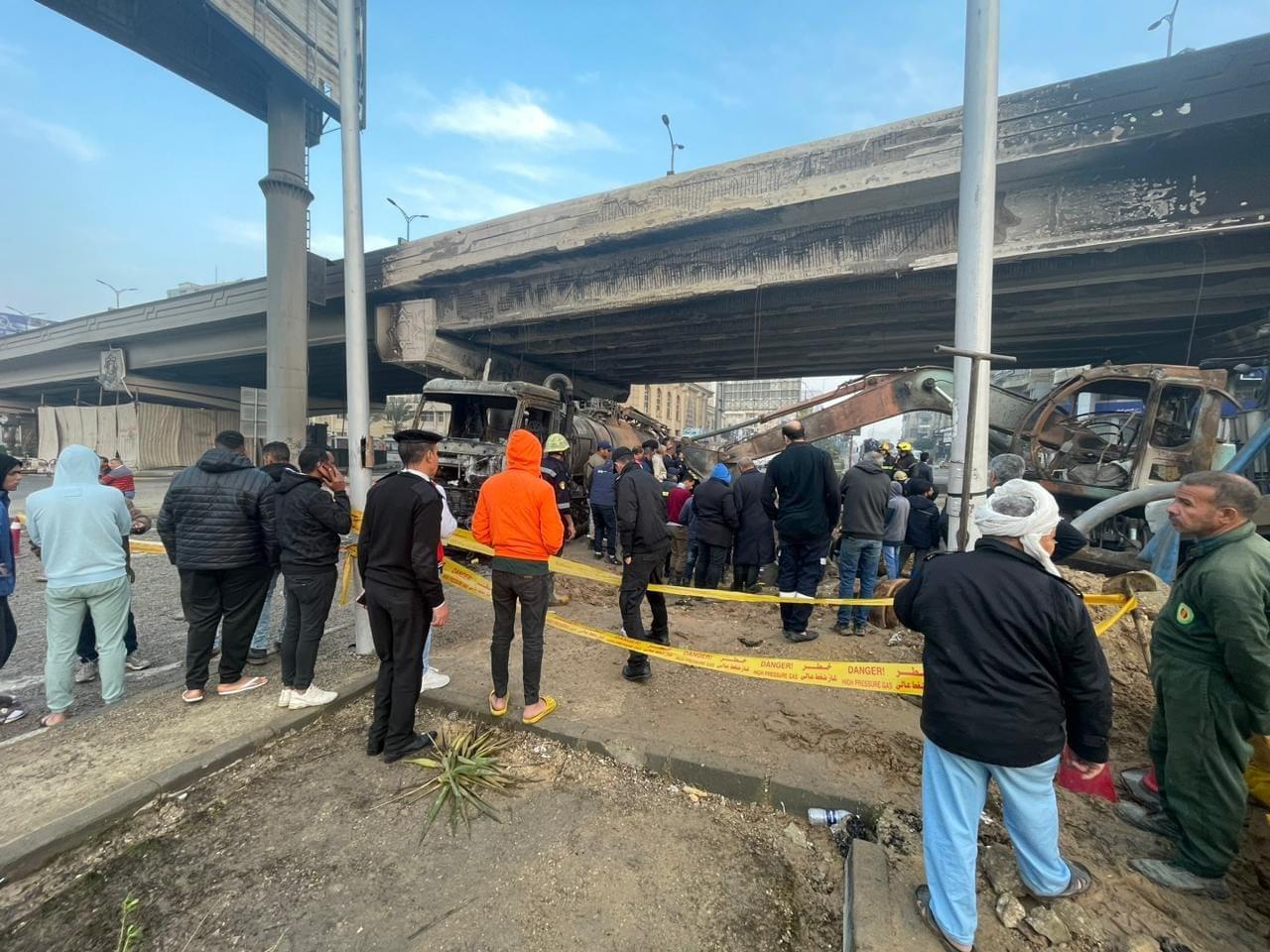 وكشفت المعاينة الأولية للحريق بطريق النصر أسفل كوبري النادي الأهلي، عن أن الحريق نشب بخط غاز بتقاطع طريق أحمد فخري أمام النادي الأهلي، ما أدى لاشتعال حفّار وسيارة أسفل الكوبري.