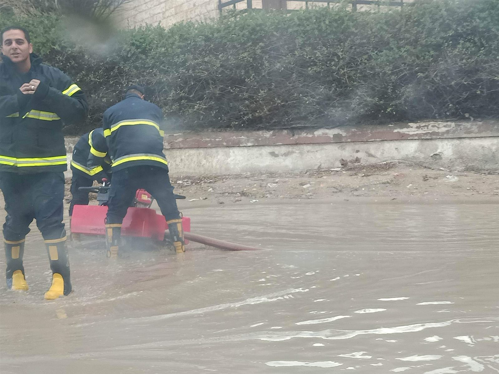 قوات الحماية المدنية بشمال سيناء تشارك في سحب مياه الأمطار من شوارع العريش| صور
