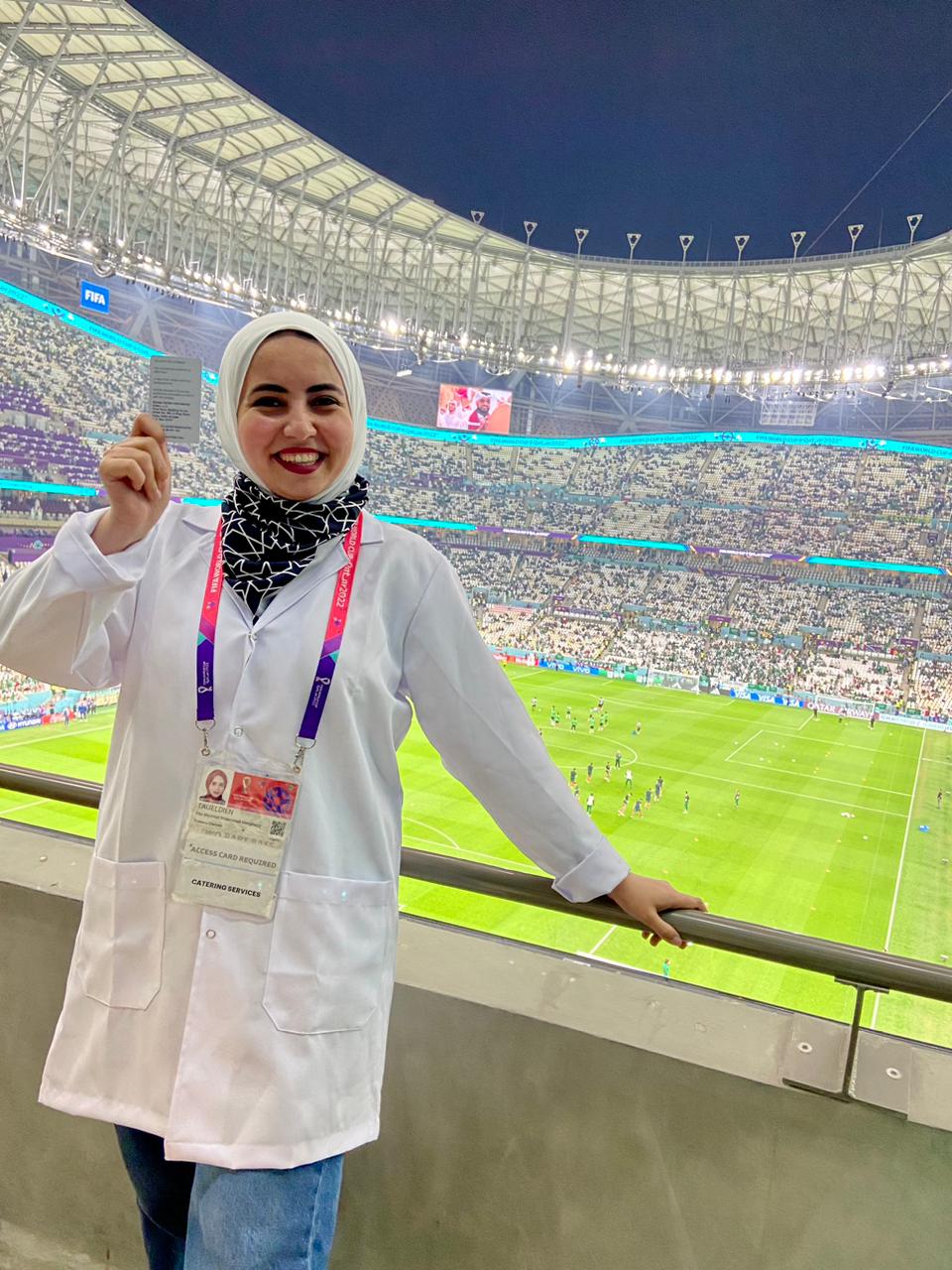 وصلت البصمة المصرية، خلال فعاليات المونديال إلى سلامة الطعام، والتفتيش على صحته، قبل تقديمه للحضور، وقامت بتلك المهمة، فتاة مصرية تبلغ من العمر 30 عامًا.