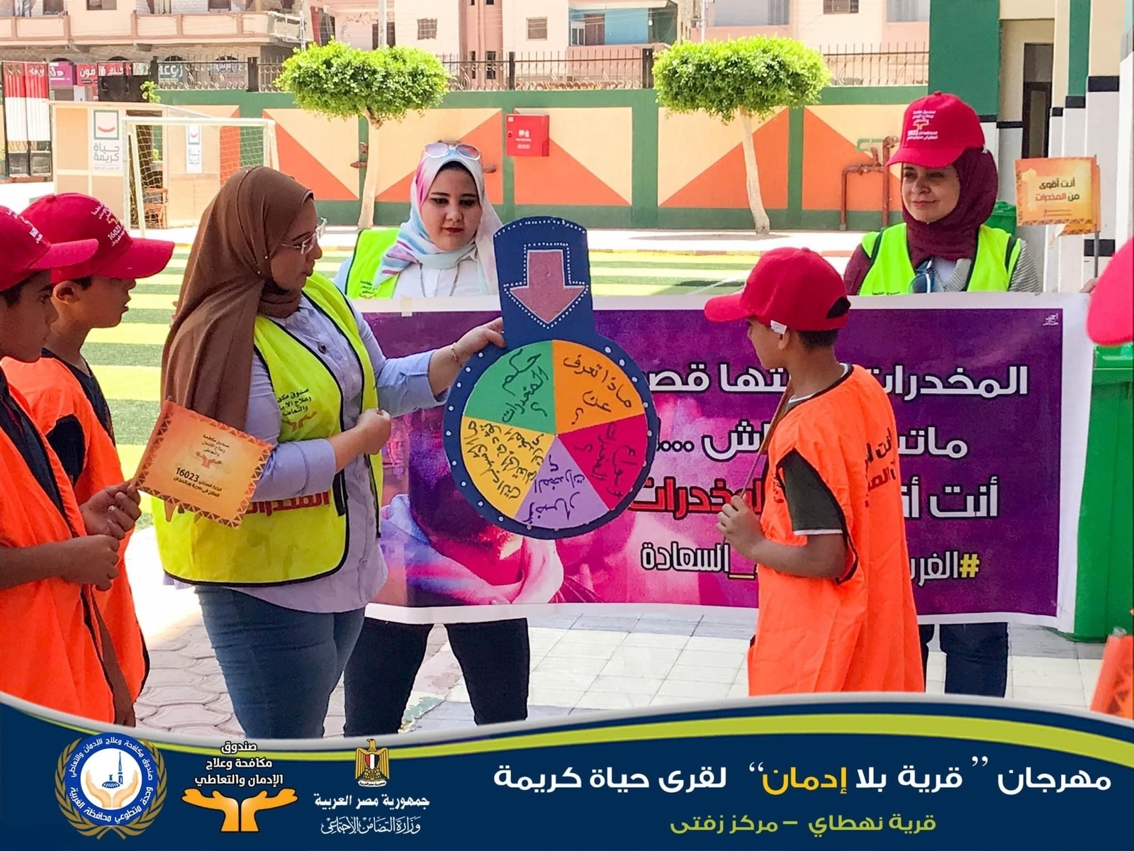 كما تم تنفيذ مهرجانات داخل القرى بالعديد من المحافظات تحت شعار «أنت البطل.. الحياة بالأخضر»، بالتعاون مع مؤسسة حياة كريمة، للتوعية بخطورة مشكلة تعاطي المواد المخدرة، وحماية الشباب من الوقوع في براثن الإدمان، واستفادة 10 آلاف مواطن من هذه المهرجانات.