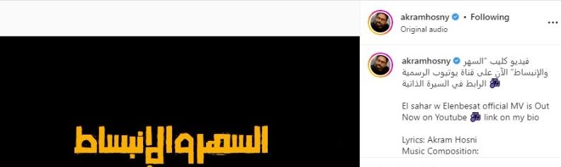 وعلى جانب آخر، يعيش أكرم حسني حالة من النشاط على المستوى الفني، حيث طرح العديد من الأغاني التي حققت نجاحا كبيرا، من بينهم أغنية ستو أنا ضمن مسلسل مكتوب عليا، الذي عرض في الموسم الرمضاني الماضي، وتصدرت الأغنية تريند مواقع التواصل الاجتماعي لفترة طويلة، وهي من ألحان أحمد وحيد كينج وكريم عاشور ومن كلمات أكرم حسني، ومن توزيع أحمد وحيد.