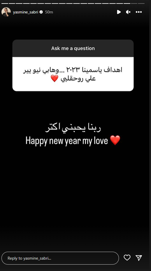 وكشفت ياسمين صبري أهدافها في عام 2023، قائلة: أتمنى ربنا يحبني أكتر.