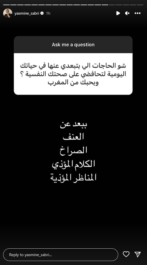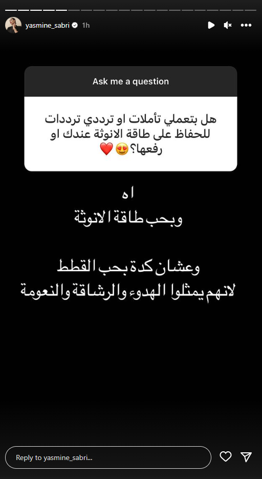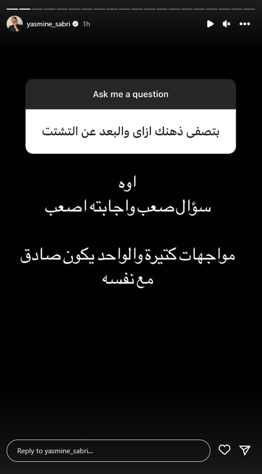 خصصت الفنانة ياسمين صبري فقرة للرد على أسئلة متابعيها عبر ستوري حسابها الخاص بموقع تبادل الصور والفيديوهات انستجرام.
