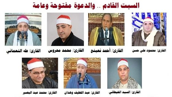تعقد وزارة الأوقاف، الجلسة الثانية للختمة المسجدية المجودة من مسجد الإمام الحسين رضي الله عنه بالقاهرة لأعلام القراء يوم السبت القادم 31 ديسمبر 2022م.