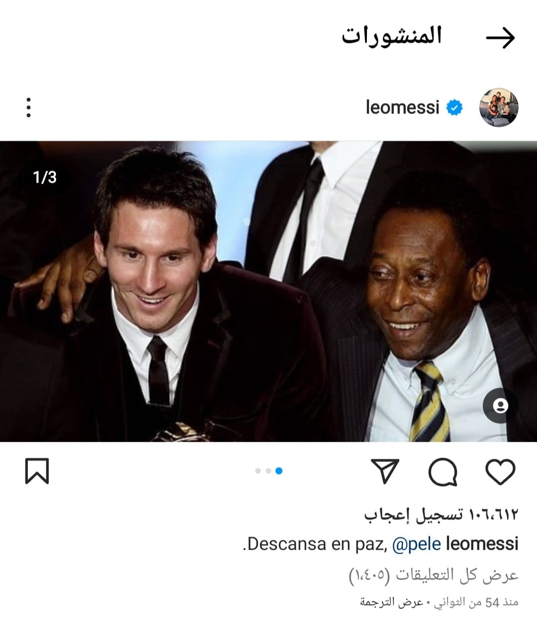 نيمار ورونالدو وميسي ينعون بيليه برسائل مؤثرة