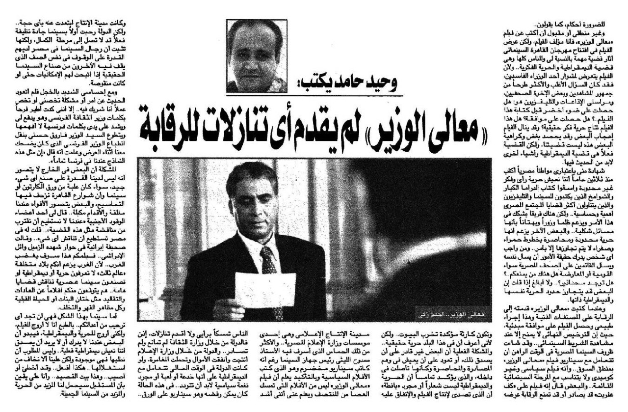 وكتب وحيد حامد في إحدى الصحف المصرية مقالا عن فيلم معالي الوزير.. ونذكر في السطور التالية شيئا منه: