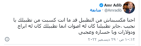 خلال اللقاء وجّه أحد الموجودين سؤالا لنجيب ساويرس عن الأسباب التي دفعته للهجوم على الإعلام في مصر، وانتقاد أبرز الوجوه فيه وعلى رأسهم الإعلامي عمرو أديب، نجيب ساويرس رد موضحًا أنها أزمة غير مقصودة على الإطلاق ولم يقصد الهجوم على أي أحد، وأن هناك صداقة تجمعه مع الإعلامي البارز عمرو أديب.