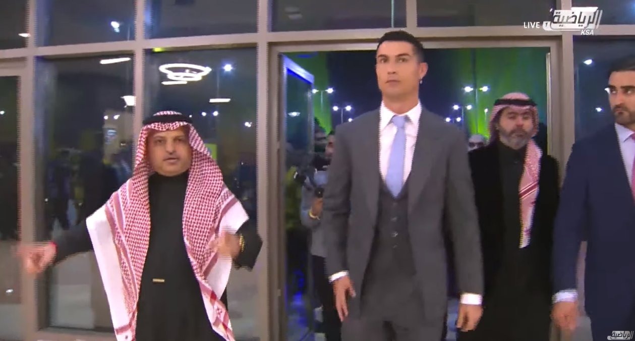 وتواجد رونالدو رفقة رئيس نادي النصر مسلي آل معمر، عند استقباله بعد الوصول إلى الملعب، وذلك استعدادًا لتقديم الصفقة التاريخية والأعظم في تاريخ الكرة السعودية.