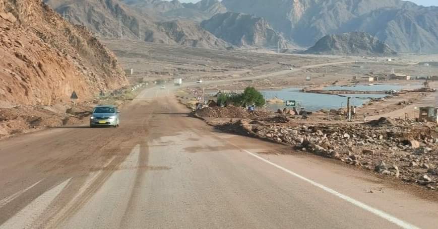 إعادة فتح طريق نويبع طابا بجنوب سيناء بعد إزالة آثار السيول