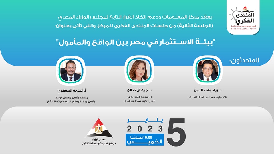 معلومات الوزراء يعقد الجلسة الثانية من المنتدى الفكري حول بيئة الاستثمار في مصر غدا