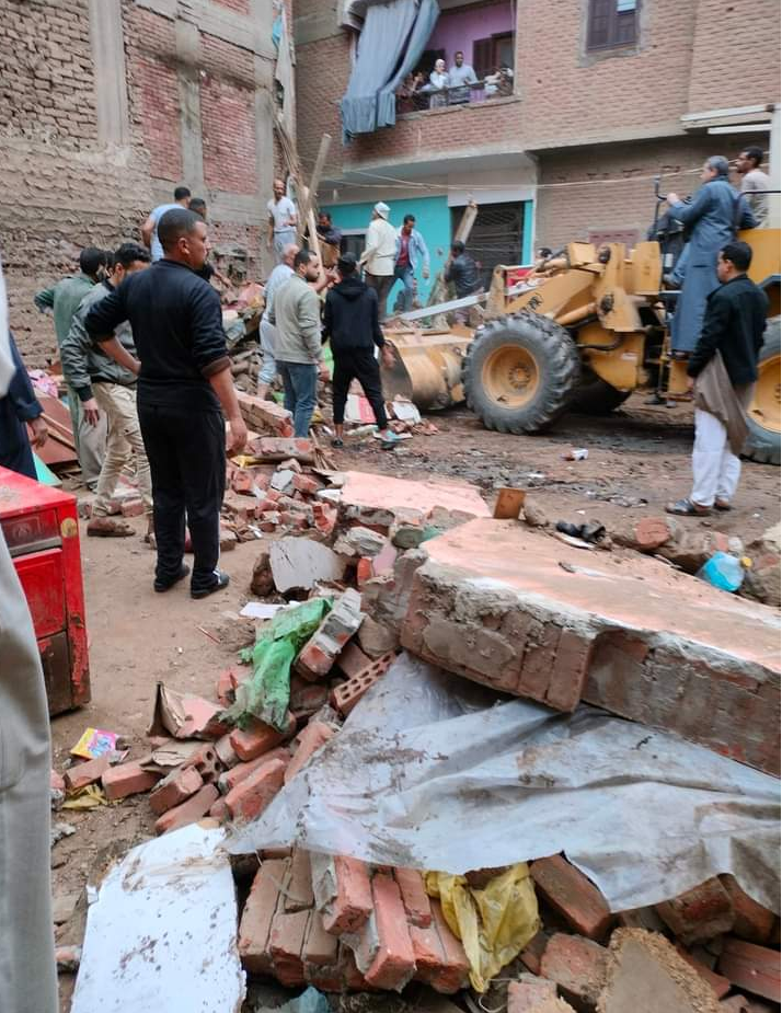 وتواصل الأجهزة المعنية رفع الأنقاض بالاستعانة بلودر وتم اتخاذ كافة الإجراءات القانونية اللازمة حيال الواقعة وتولت النيابة العامة مباشرة التحقيقات.