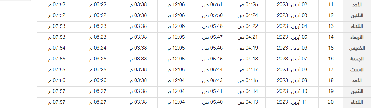 | 3 رمضان 1444 | السبت 25 مارس | الساعة 6:09 دقائق |