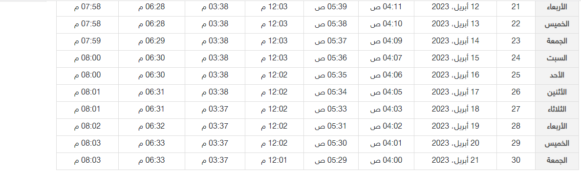 | 2 رمضان 1444 | الجمعة 24 مارس | الساعة 6:09 دقائق |