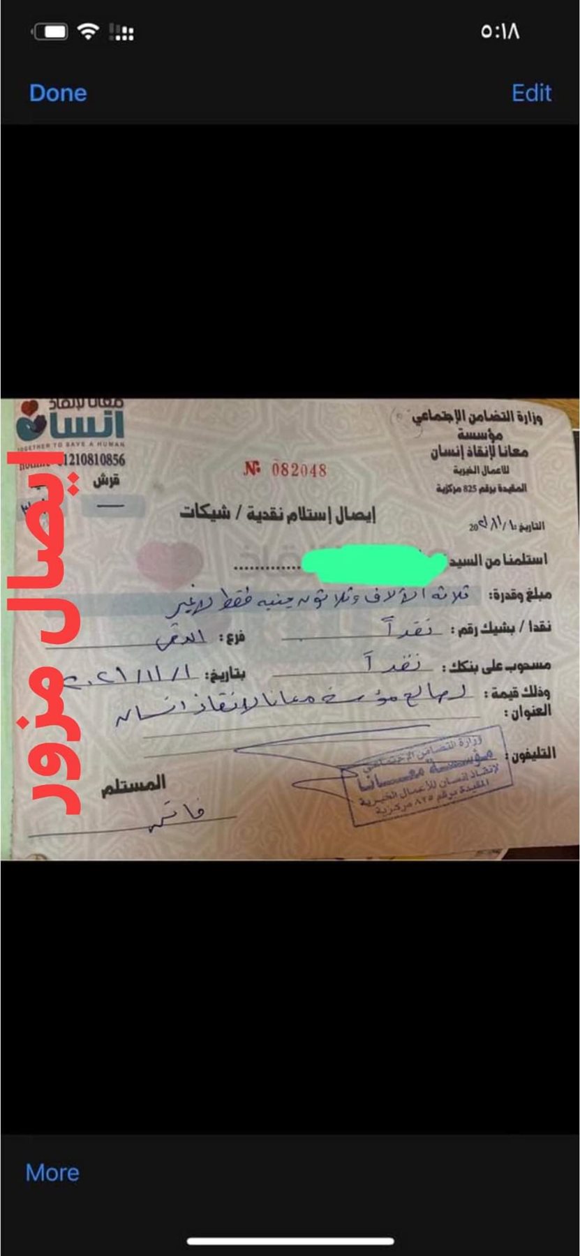 وأشار: “قررت أبحث أكثر وقررت أدخل على رسائل صفحة ”معانا لإنقاذ إنسان" اللي كان ليا صلاحيات دخول عليها وقتها، وكانت الصدمة؛ حيث وجدت صورًا لإيصالات إيداعات بنكية من داخل وخارج مصر، تم تحويلها علي حسابات شخصية، لبعض الموظفين بالمؤسسة، وده لأن الموظفين كانوا بيقولوا للناس إن حسابات المؤسسة البنكية موقوفة فبيبعتوا رقم حساباتهم الشخصية، وبالتالي بيتم عليها التحويل؛ وطبعًا كل هذه التحويلات كان بيتم إرسال إيصالات مزورة بها؛ وبالتالي المؤسسة لم يصل لها من هذه التبرعات مليم واحد".
