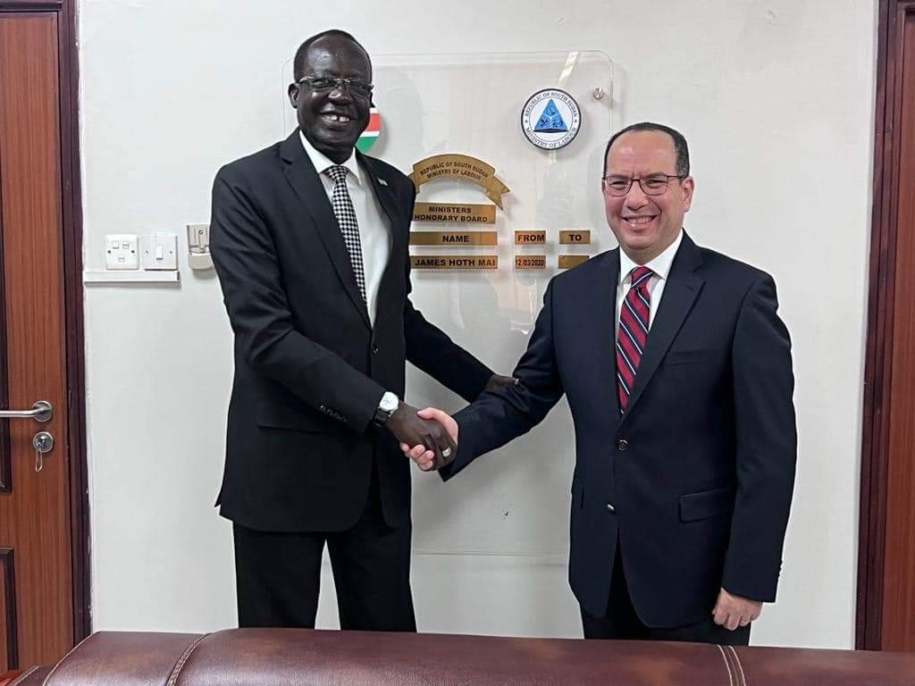سفير مصر في جنوب السودان يلتقي وزير العمل لبحث التعاون المشترك