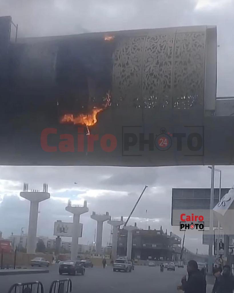 حريق بكوبري مشاة بالقرب من هايبر وان بـ أكتوبر| صور