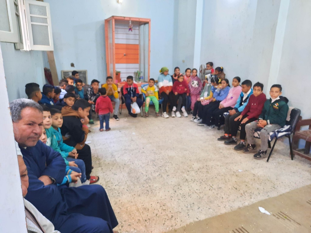 تلاميذ مدرسة ابتدائية ببني سويف يزورون الكنسية لتقديم التهنئة بعيد الميلاد المجيد