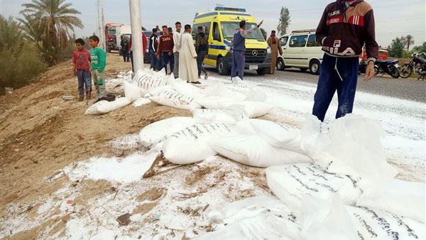 إصابة سائق إثر انقلاب سيارة محملة بالأسمدة في قنا