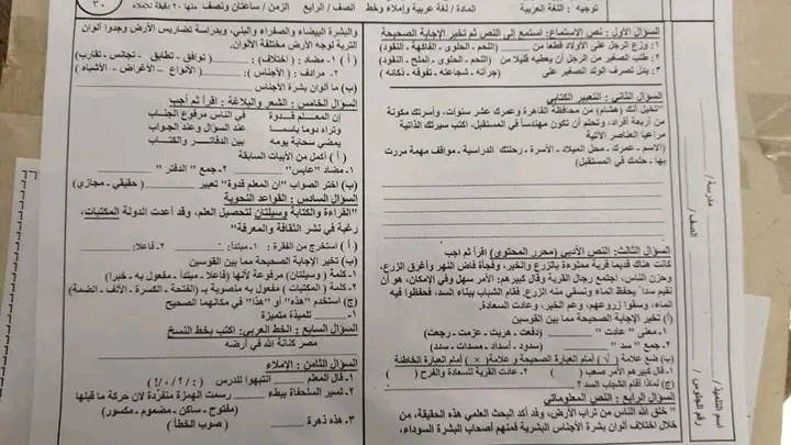 أنباء تزعم حدوث خطأ في امتحان مادة اللغة العربية لطلاب الصف الرابع الابتدائي