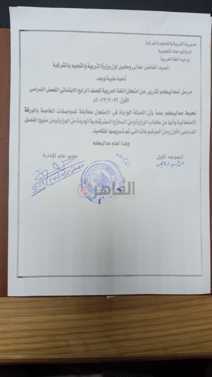 بعد نشر القاهرة 24.. تحرك عاجل من التعليم بشأن خطأ امتحان عربي 4 ابتدائي بالشرقية| مستند