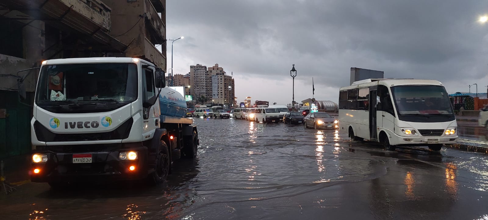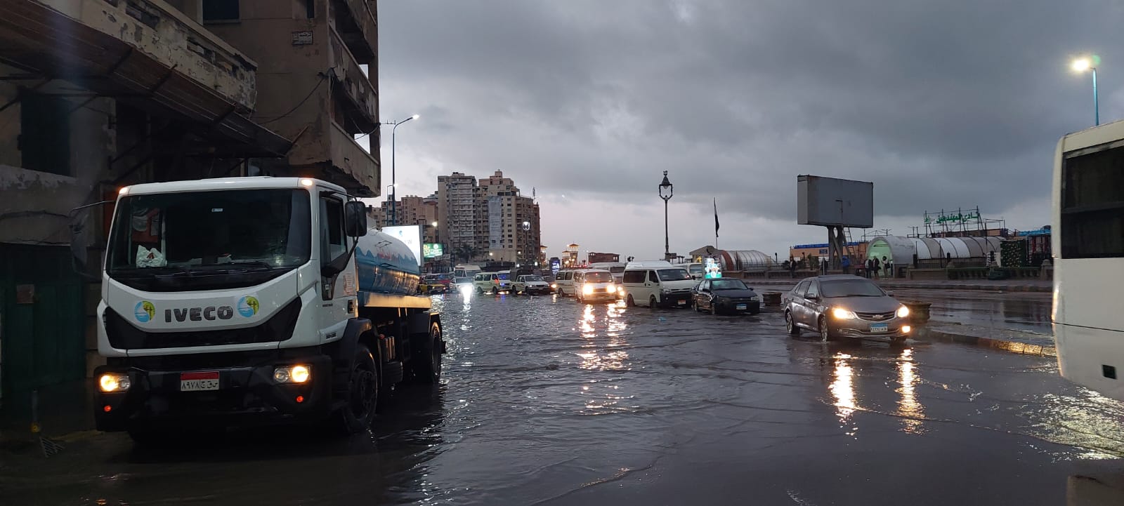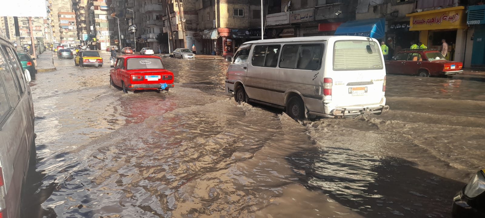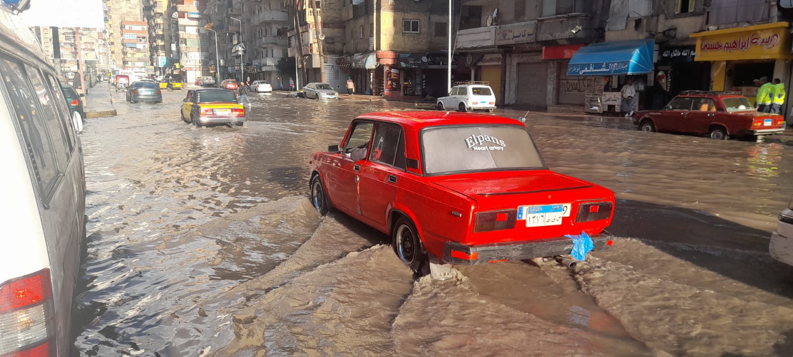 تشهد محافظة الإسكندرية سيولًا على منطقة منتزه ثان وأول وشرق منذ الساعة الثالثة صباحًا ومستمرة حتى الآن.