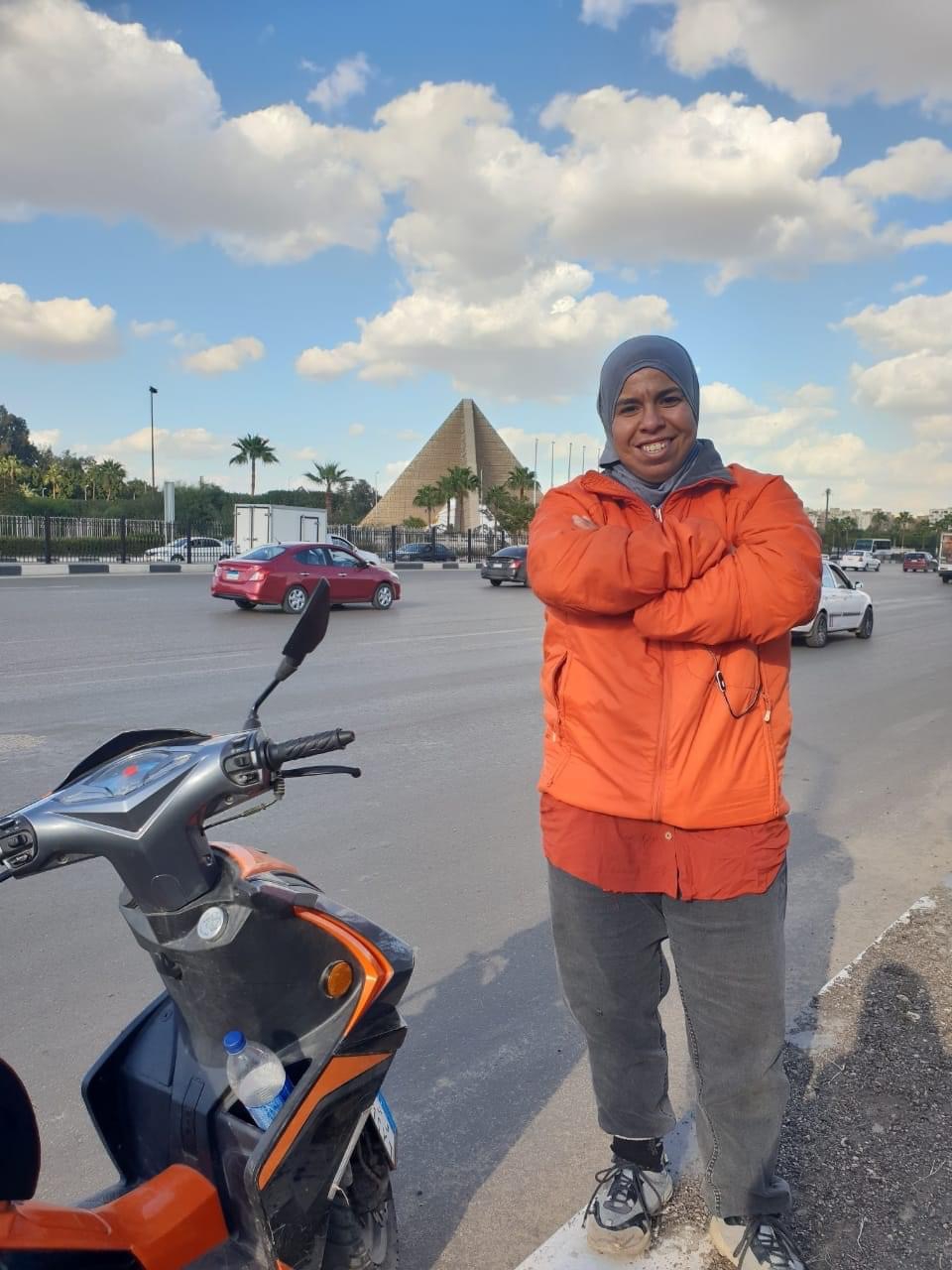 تقول إيمان العدوي: يومي يبدأ من بعد الفجر بساعة بصحى أطلع السكوتر من الجراج، ثم أبدأ في تلقي طلبات التوصيل، مضيفة: السكوتر اسمه مرزوق زقزوقة اشتريته قبل ما أمشي، دفعت فيه تحويشة العمر.. أكثر من 30 ألف جنيه.